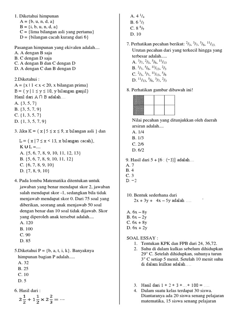 Namun sebelum gengs berlatih soal soalnya ada baiknya gengs pelajari terlebih dahulu materi tentang materi himpunan smp kelas 7. Pada materi tersebut juga disediakan contoh contohnya. Bentuk soal pilihan ganda.